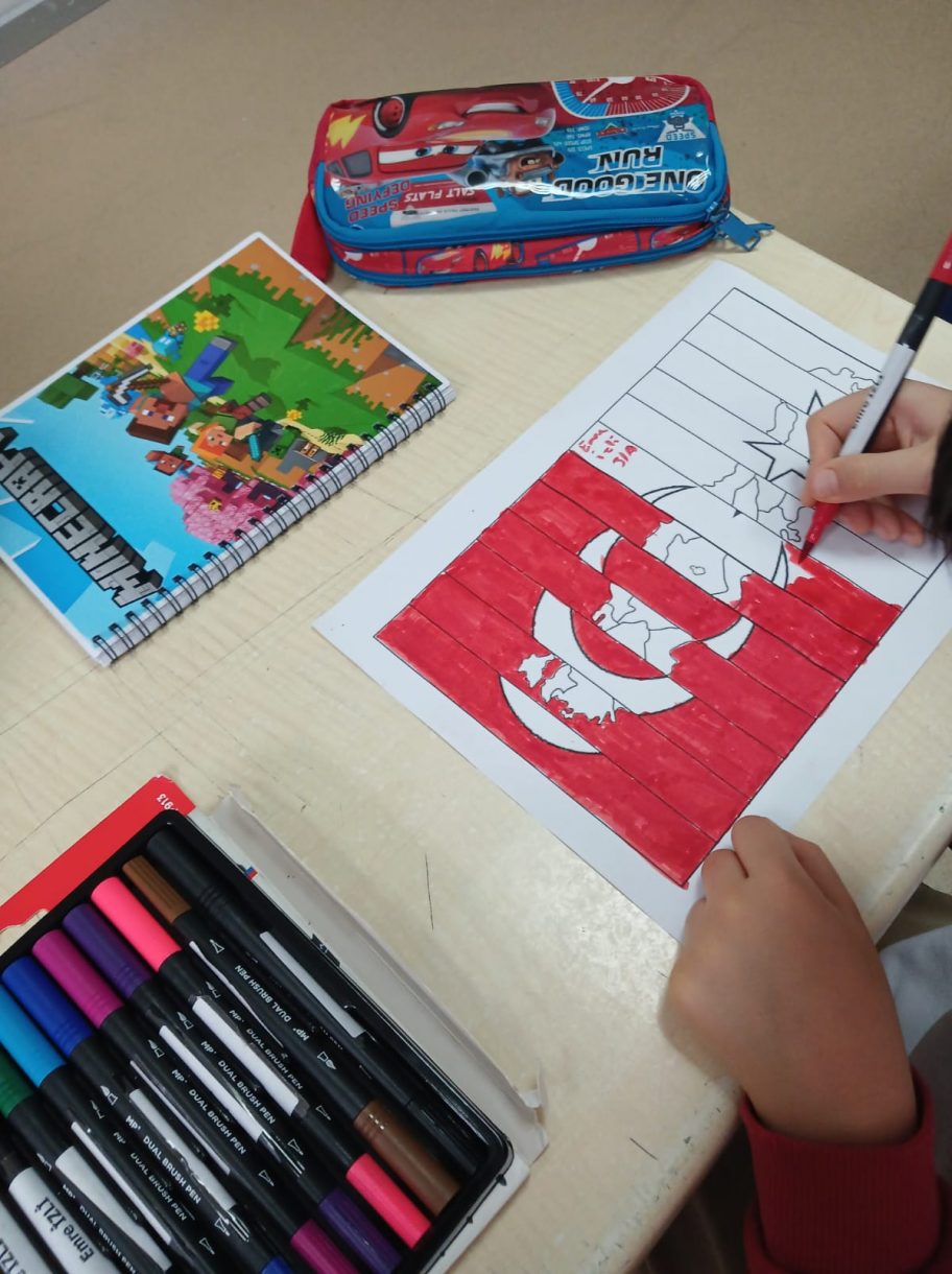 Derslerde bayrak bilincini artırmaya yönelik şiir yazma etkinlikleri gerçekleştirildi. Öğrenciler duygu ve düşüncelerini dizelere dökerek milli değerlere olan bağlılıklarını ifade etme fırsatı buldu. Ayrıca okul, Türk bayraklarıyla donatılarak görsel bir farkındalık oluşturuldu.