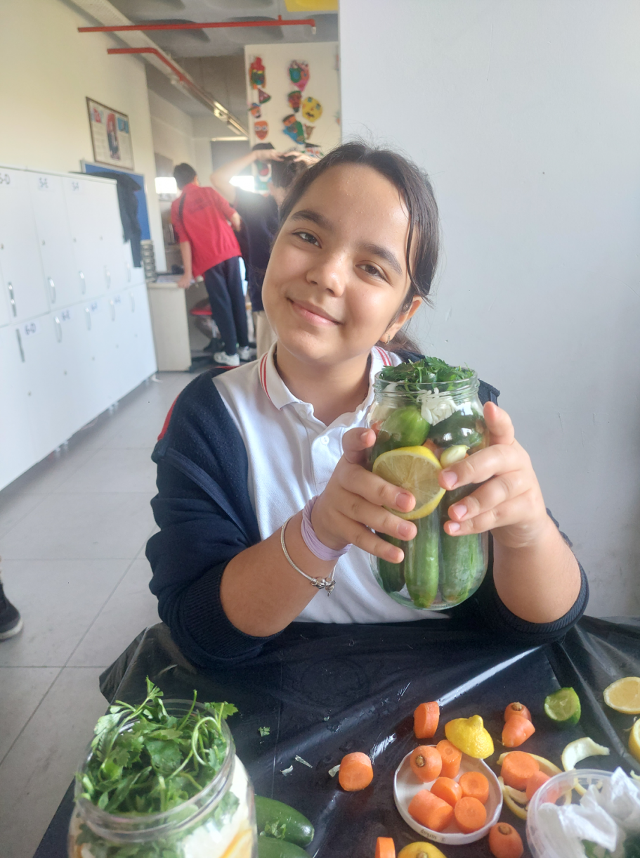 Hazır gıda tüketimini azaltma bilinci oluşturmayı amaçlayan etkinlikte öğrenciler; sebzeleri hazırlayıp kavanozlara yerleştirerek turşu kurma sürecini baştan sona uygulamalı olarak öğrendi. Etkinlik, öğrenciler için hem eğitici hem de keyifli bir ortam oluşturdu.