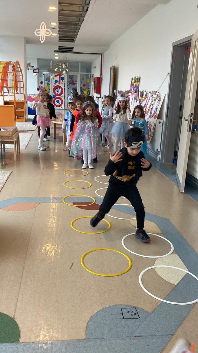 Programda yer alan illüzyon gösterisi öğrenciler tarafından ilgiyle takip edildi. 100 gün boyunca hazırlanan çalışmaların sergilenmesiyle öğrenciler emeklerini paylaşma fırsatı buldu. Renkli kostümleriyle kutlamaya katılan minikler, müzik eşliğinde dans ederek ve çeşitli oyunlar oynayarak günü keyifle tamamladı.