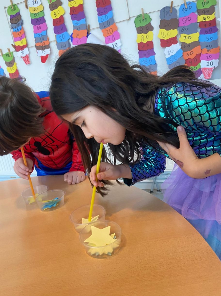 Etkinlik kapsamında öğrenciler, 100 sayısını pekiştirmeye yönelik çeşitli oyunlara katıldı. Rakamlarla uygun lego yerleştirme etkinliğiyle sayı eşleştirme çalışmaları yapılırken, pipetlerle 100 yıldız taşıma oyunu sayesinde dikkat ve el-göz koordinasyonu desteklendi. "Canavara 100 top yedirme" ve mandallarla 100 çorap asma etkinlikleri ise hem eğlenceli anlara sahne oldu hem de ince motor becerilerinin gelişimine katkı sağladı.