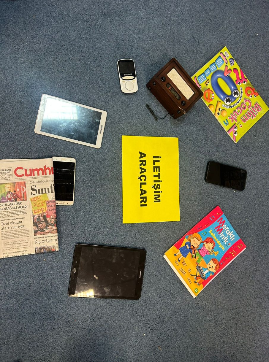 Etkinlik kapsamında öğrencilerimiz evlerinden getirdikleri dergi, gazete, telsiz, telefon ve tablet gibi iletişim araçlarını arkadaşlarına tanıtarak bu araçların ne işe yaradığını ve nasıl kullanıldığını paylaştı.