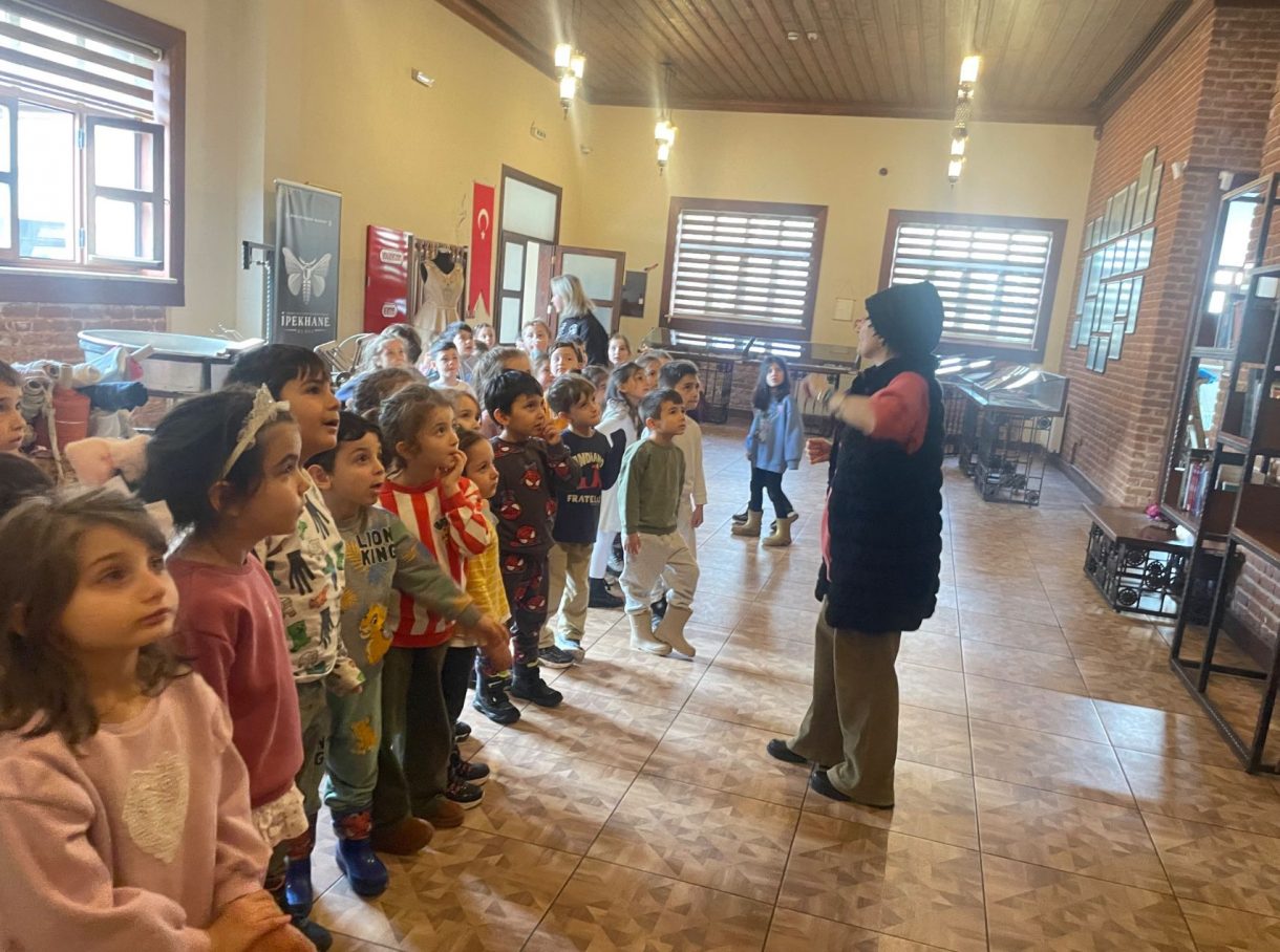 3 Mart Azizoğlu İlkokulu anasınıfı öğrencileri, Umurbey İpek Üretim ve Tasarım Merkezi Yaşayan Müze'yi ziyaret ederek ipeğin geçmişten günümüze uzanan yolculuğunu yakından tanıdı.