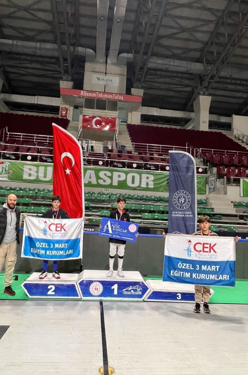 3 Mart Azizoğlu Ortaokulu öğrencileri, Bursa Okul Sporları tarafından organize edilen Eskrim Yıldızlar İl Birinciliği Turnuvası'nda önemli dereceler elde etti. Tofaş Spor Salonu'nda gerçekleştirilen turnuvada Kılıç branşında mücadele eden öğrencimiz Arman Ayar, 11 okul arasından Yıldız Erkekler kategorisinde Bursa 3'üncüsü oldu.