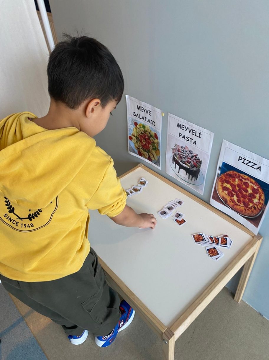 Öğrenciler, yapmak istedikleri mutfak etkinliklerini listeledi; meyveli pasta, pizza ve meyve salatası olmak üzere üç seçenek belirlendi. Tercihlerini oy pusulalarıyla sandığa atan öğrencilerin oyları sayıldı ve çoğunluğun seçimi meyveli pasta oldu. Seçim sonucunun ardından öğrenciler, meyveli pastayı birlikte hazırlayarak etkinliği tamamladı.