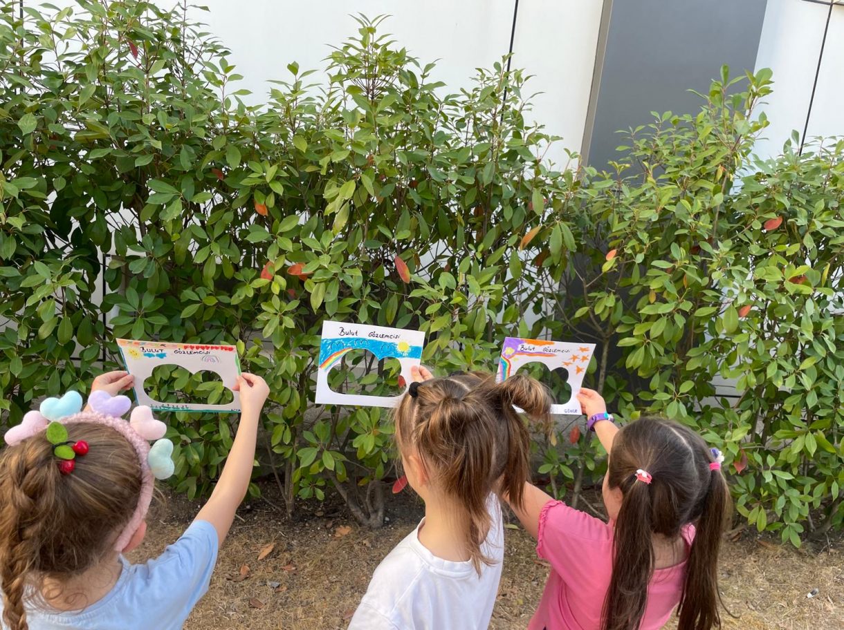 Bahçeye çıkarak bulutları ve doğayı dikkatle inceleyen minikler, kimi zaman bulutları bir tavşana kimi zaman bir gemiye benzetti.