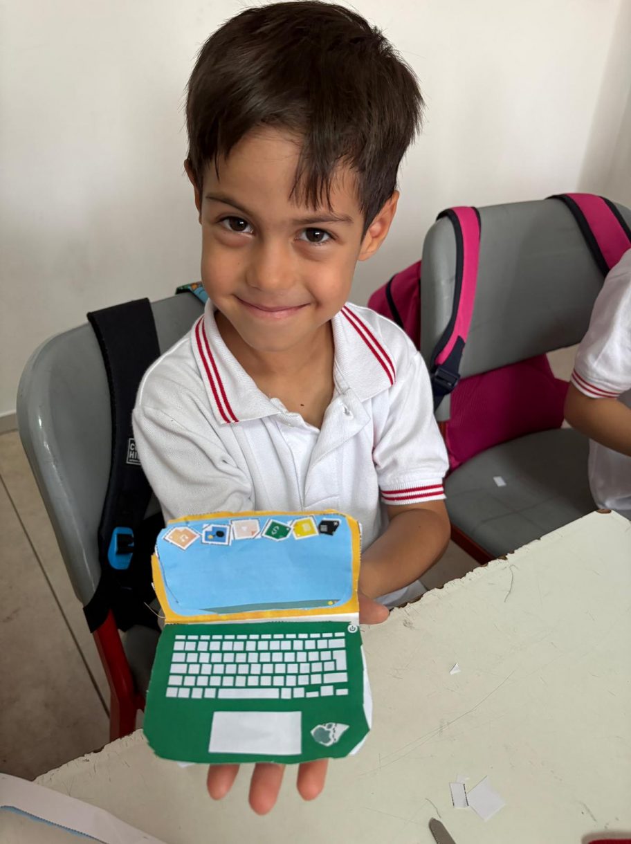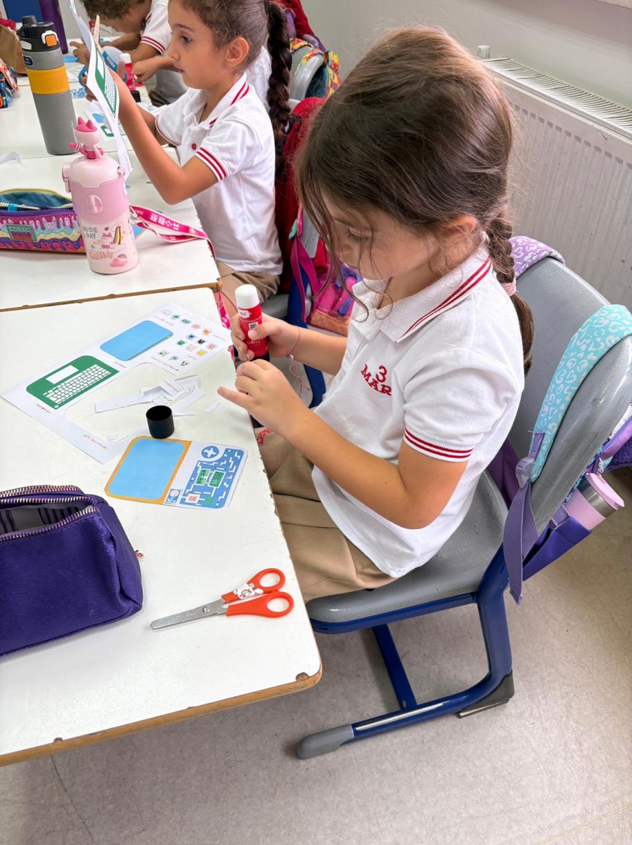 Etkinlikte öğrenciler, bilgisayar parçalarının yer aldığı çalışma kâğıtlarını tek tek kesip doğru yerlere yapıştırdı. Ardından bilgisayarın hangi parçalardan oluştuğunu ve bu parçaların ne işe yaradığını keşfettiler.