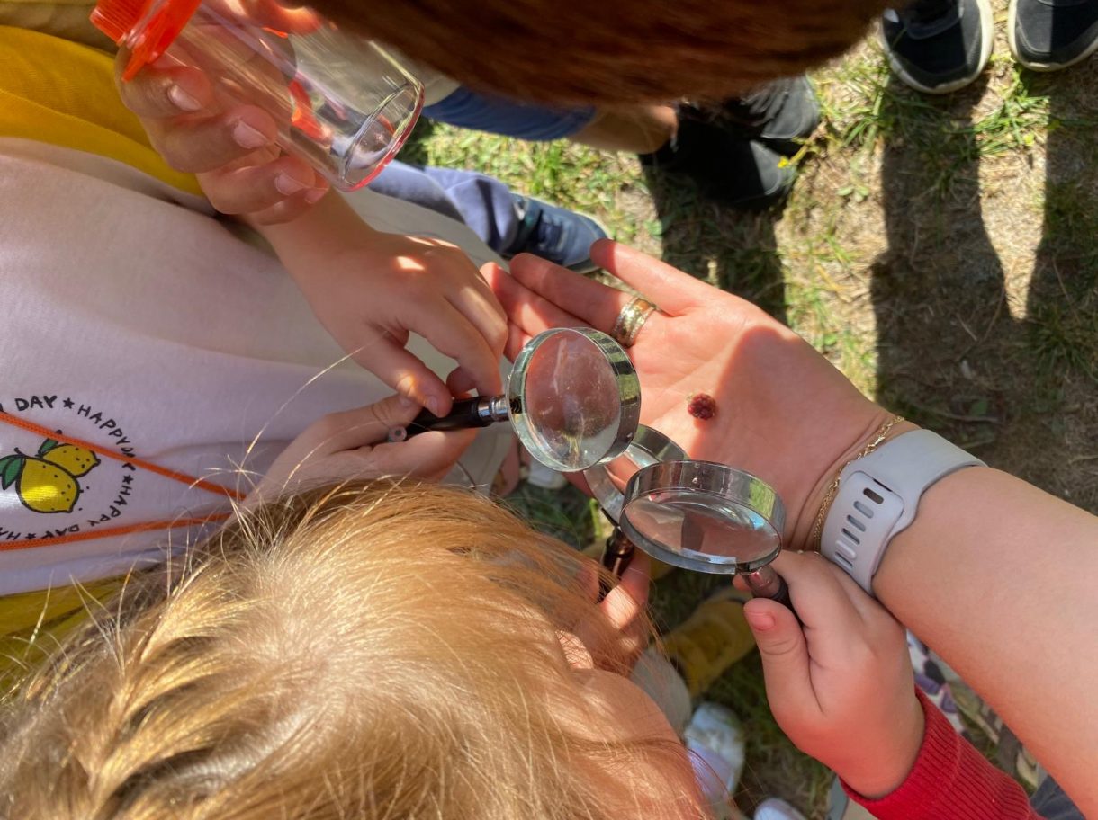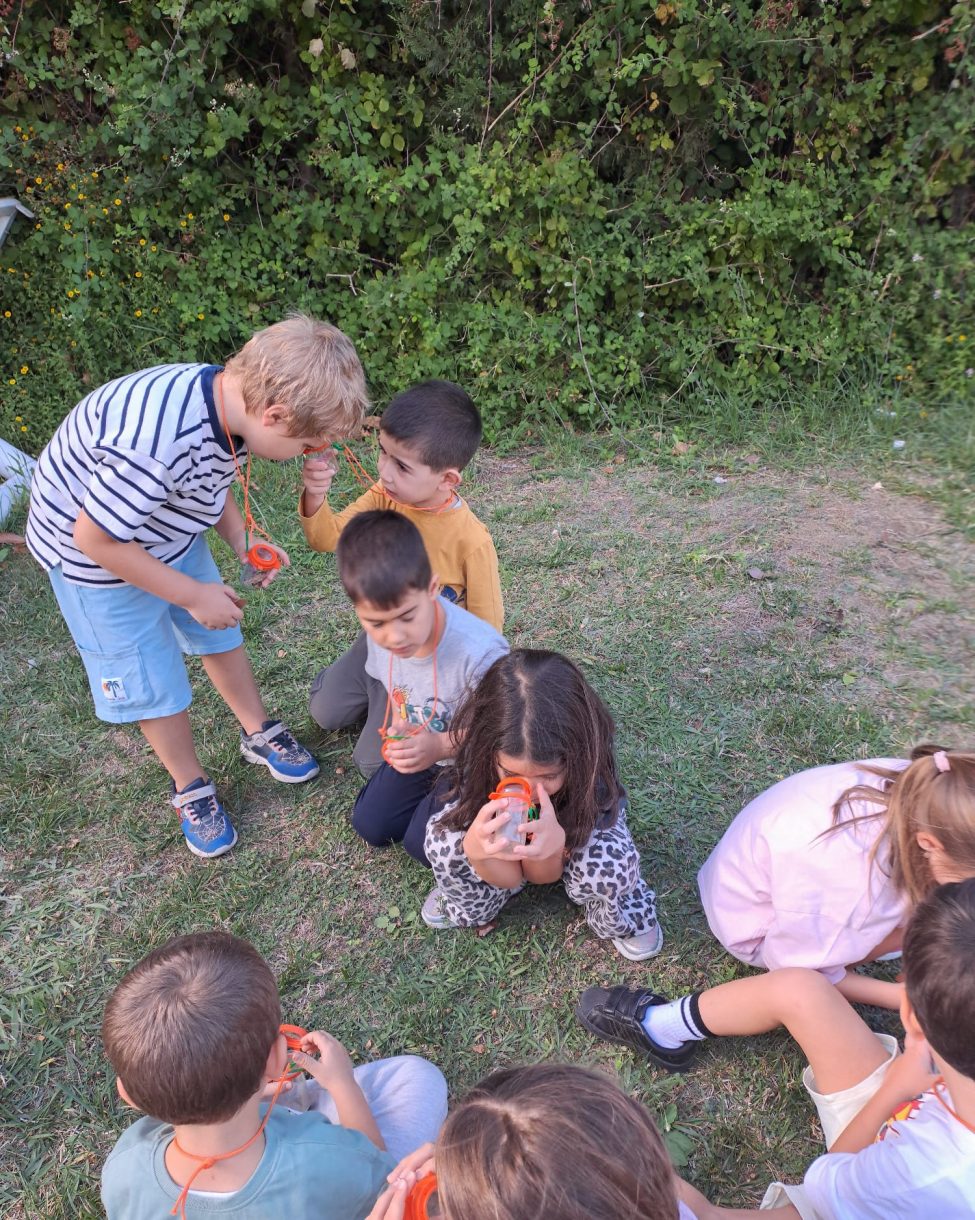 Büyüteçli gözlem kutularıyla bahçeye çıkan minikler, çiçekler, salyangozlar, böğürtlenler, taşlar ve dal parçaları gibi birbirinden ilginç doğa hazinelerini yakından inceledi. Topladıkları keşifleri heyecanla arkadaşlarıyla paylaşan öğrenciler hem öğrendi hem de eğlenceli anlar yaşadı.