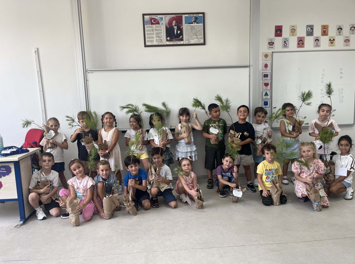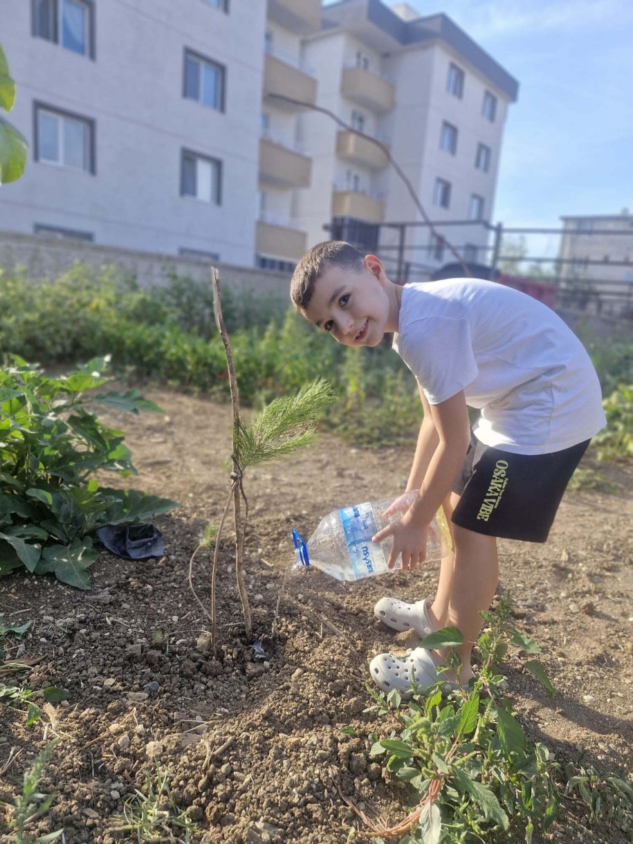 Minik öğrenciler aldıkları fidanları evlerinde, bahçelerinde veya çevrelerinde toprakla buluşturarak kendi küçük ormanlarının ilk adımlarını attı. Her bir fidan, öğrencilerimizin kalplerinde yeşeren doğa sevgisinin bir simgesi oldu. Çocuklar, diktikleri her fidanı sularken ve onların büyüdüğünü izlerken aslında doğanın da bizimle birlikte nefes aldığını, yaşam bulduğunu hissediyor.
