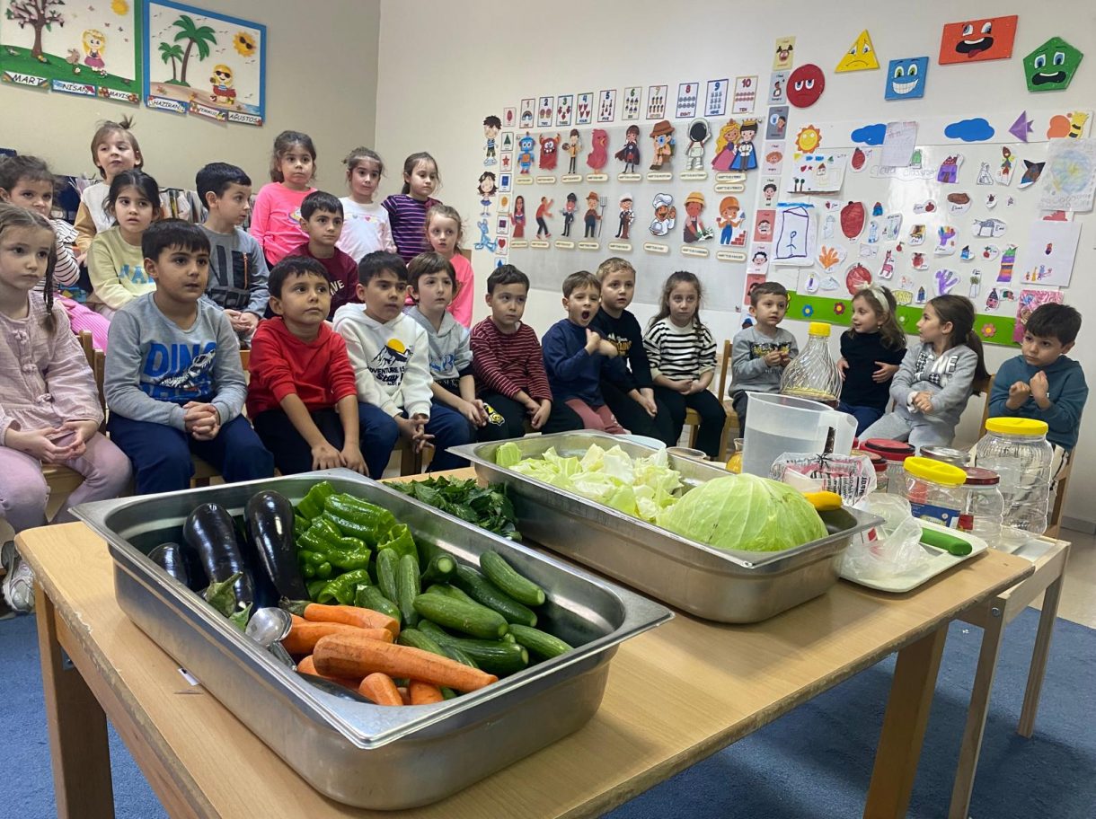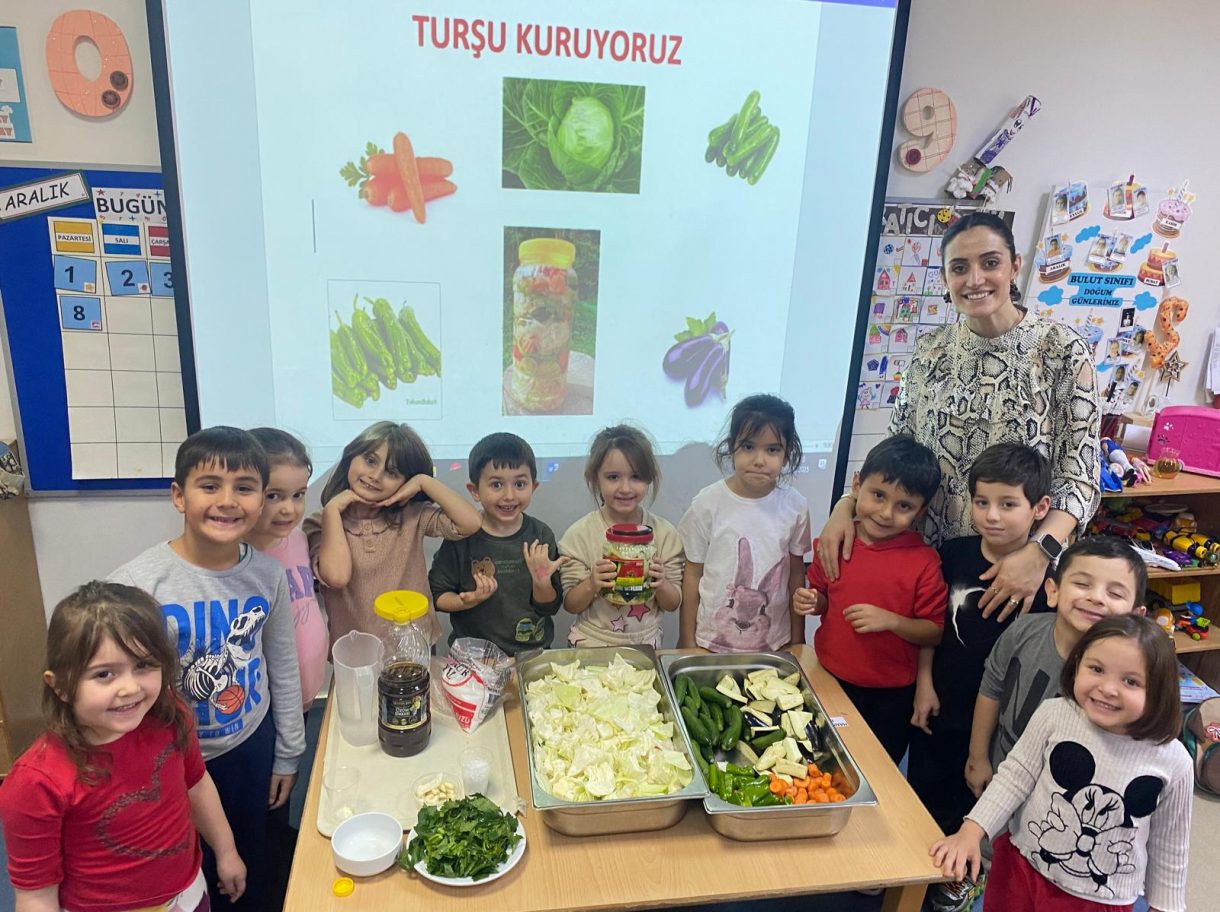 Sağlıklı beslenme alışkanlıkları kazandırmayı, duyusal deneyimleri zenginleştirmeyi ve sebze-meyveleri yakından tanımayı amaçlayan etkinlikte öğrenciler, önce hangi sebzelerle turşu yapılabileceğini gözlemledi. Ardından sebzelerin tadına bakarak farklı lezzetleri keşfetme fırsatı buldu. Bu süreçte çocuklar, turşu yapım aşamalarını ve fermantasyon sürecini gözlemleyerek malzemelerin zamanla nasıl değiştiğini deneyimledi.