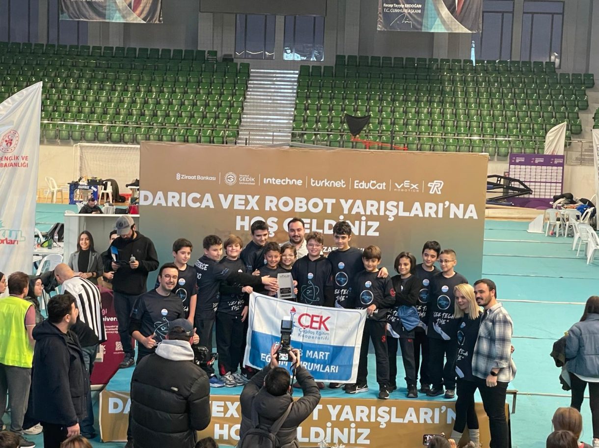 Bu başarıda emeği geçen öğrencilerimiz Tuna Kopan (5/A), Korhan Topaloğlu (5/C), Deniz Çağan Ertaş (5/C), Doruk Yücecengiz (5/D), Berk Hacıbaba (5/F), Mehmet Umut Anbar (6/C), Emir Gonca (6/D), Kayra Seferoğlu (7/A), Demir Besen (7/A), Deniz Burak İzmit (7/A), Eris Abazi (7/B), Mehmet Doruk Özer (7/D) ve onları büyük bir özveriyle hazırlayan öğretmenlerimiz Çağlar Tunçel, Sema Işık ve Mustafa Yıldırım'ı tebrik ediyor, geleceği bilim ve teknolojiyle şekillendiren öğrencilerimizle gurur duyuyoruz.