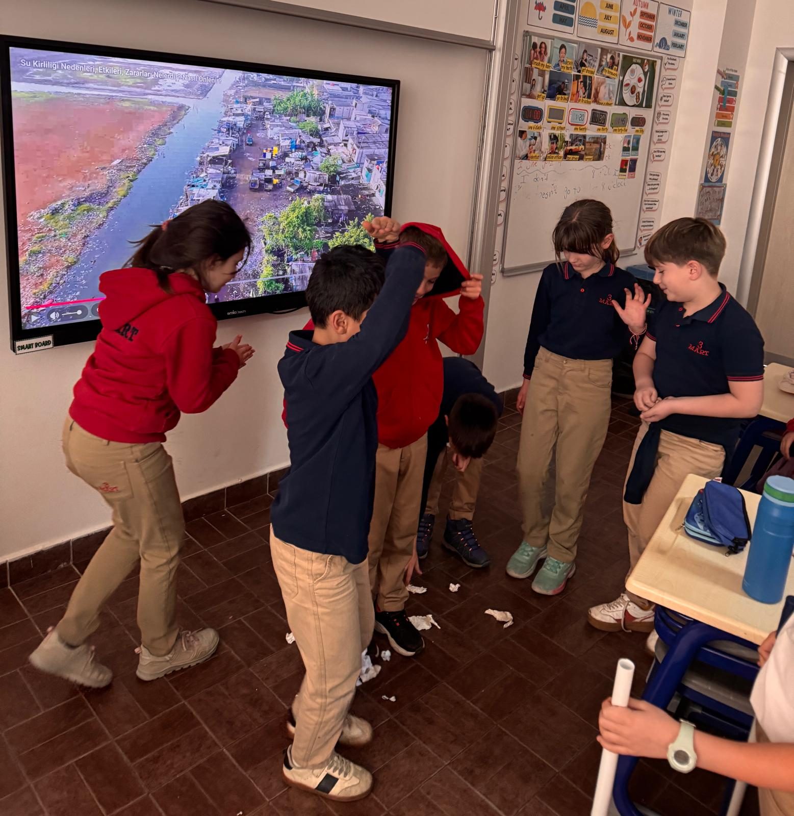 Yeşil Vatan Projesi kapsamında çevre bilinci etkinliklerine hız kesmeden devam eden ikinci sınıf öğrencileri, bu kez dünyamızın en önemli sorunlarından biri olan "su kirliliğini" ele alan etkileyici bir çalışmaya imza attı. Minik öğrenciler, yaratıcılıklarını kullanarak gerçekleştirdikleri canlandırmalarla temiz su kaynaklarının önemine dikkat çekti.