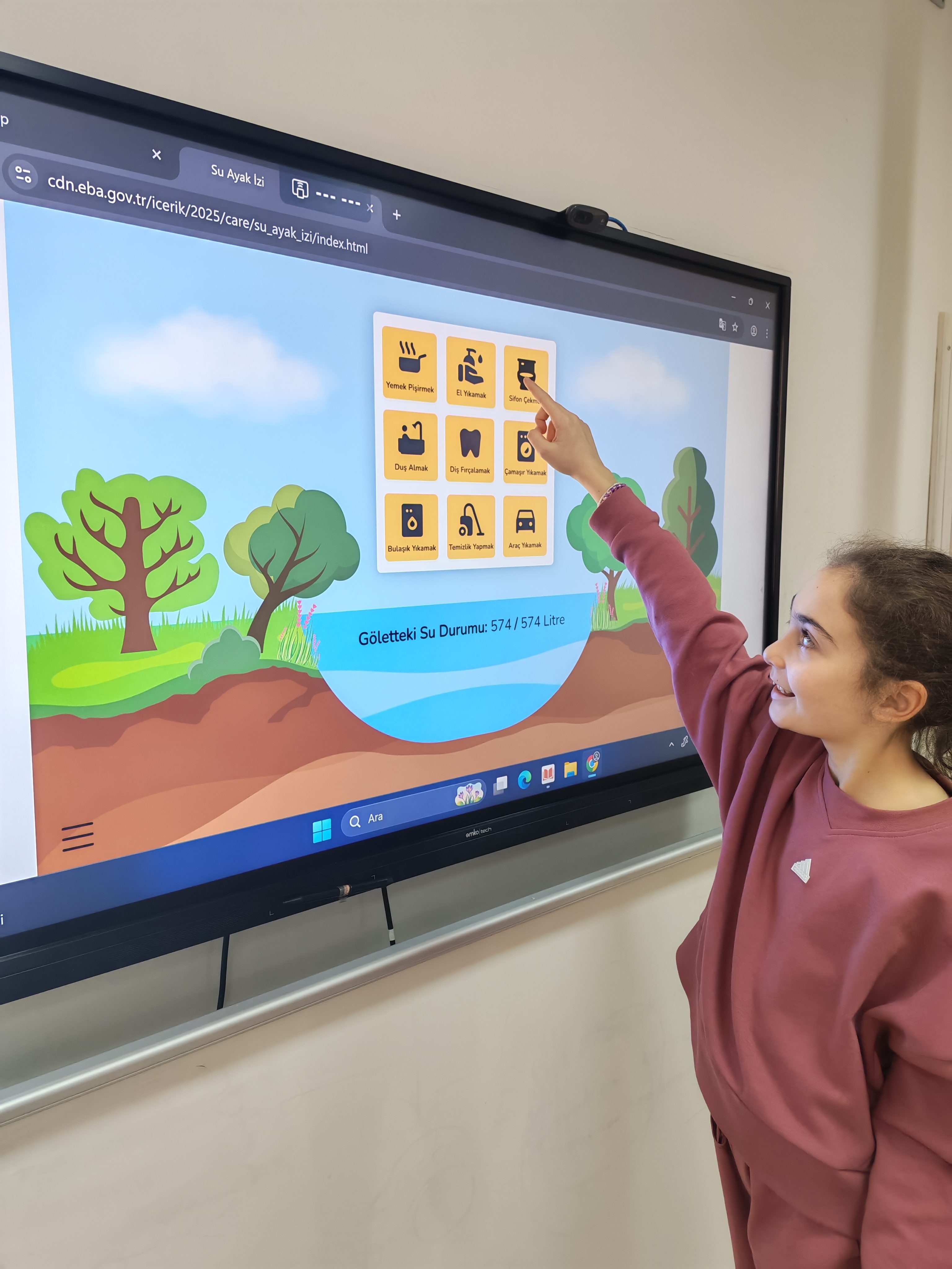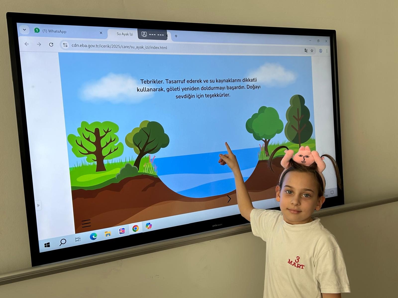 Su kaynakları ve bu kaynakların doğru, verimli kullanımı konusunda video izleyen öğrencilerimiz bu konuda öğrendikleri bilgileri daha sonra interaktif videolu çalışmayla pekiştirerek bilinçli bir birey olma yolunda önemli bir adım attılar.