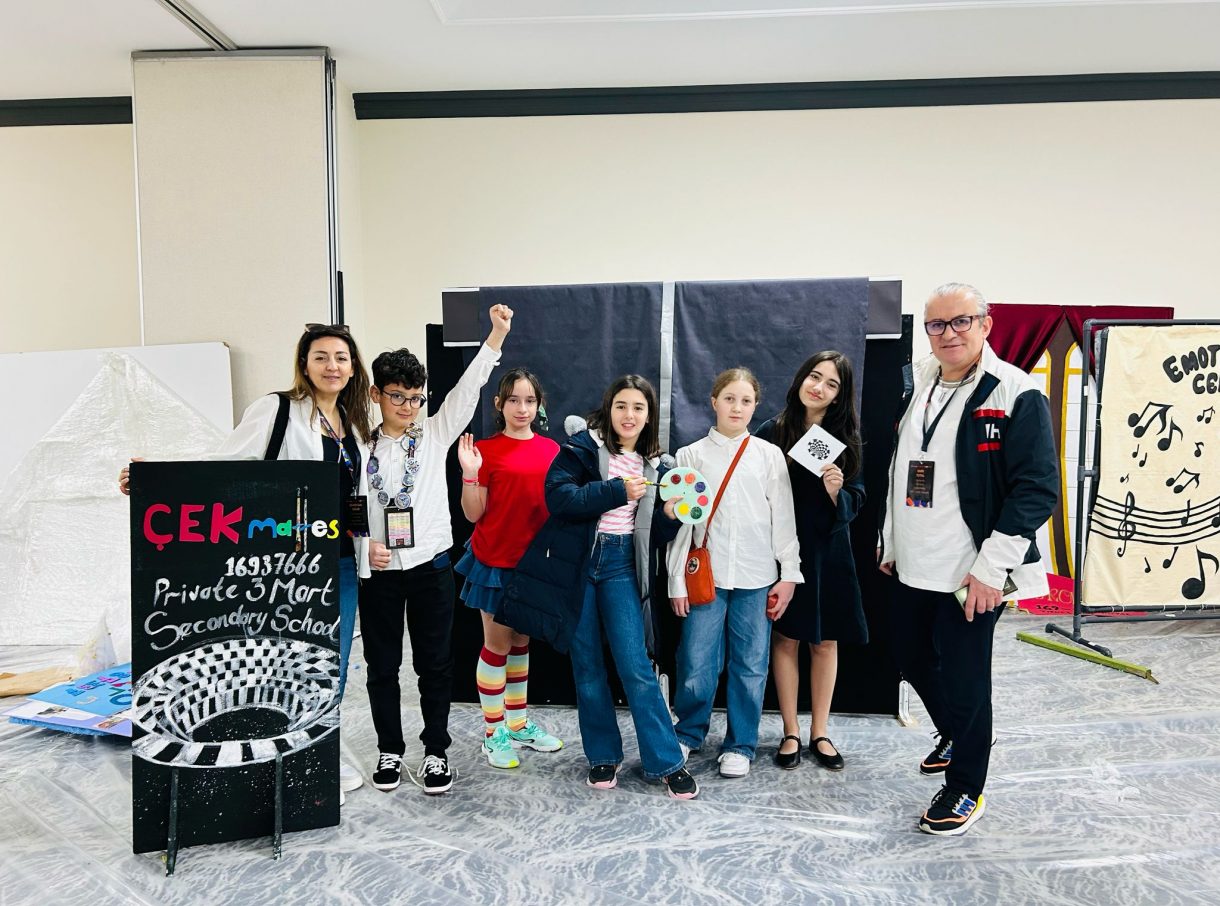 Our team 'ÇEK-Mattes', consisting of 4 girls and 1 boy, ranked 1st in the Fine Arts category at the middle level, while our team 'ÇEK-List', consisting of 4 girls and 2 boys, ranked 3rd in the Scientific category and won the special Da Vinci award given to only one team in its branch.