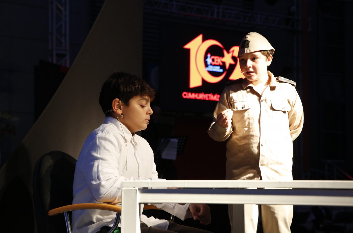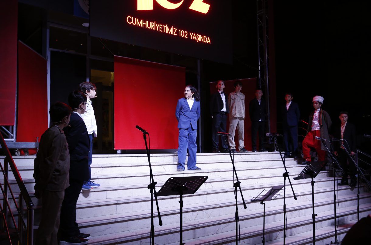 Gecede, 3 Mart Eğitim Kurumları Proje Koordinatörü İbrahim Zeki Karabulut'un yazıp yönettiği ve anlatıcılığını yaptığı "Kurtuluştan Kuruluşa Cumhuriyet" adlı gösteri sahnelendi. Yerleşke içinde kurulan beş sahnede öğrencilerin performansları ve Karabulut'un etkileyici anlatımı, izleyenlere duygu dolu anlar yaşattı. Gösteri sonunda bahçeyi dolduran konuklar, sahne alan öğrencileri dakikalarca ayakta alkışladı. Okul girişinde öğrencilerin hazırladığı Atatürk ve Cumhuriyet temalı resim sergisi de katılımcıların beğenisini topladı.
