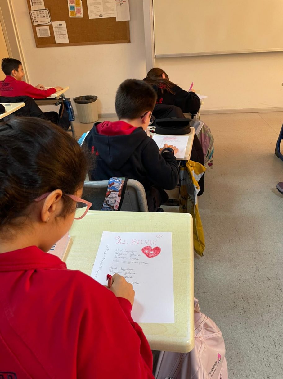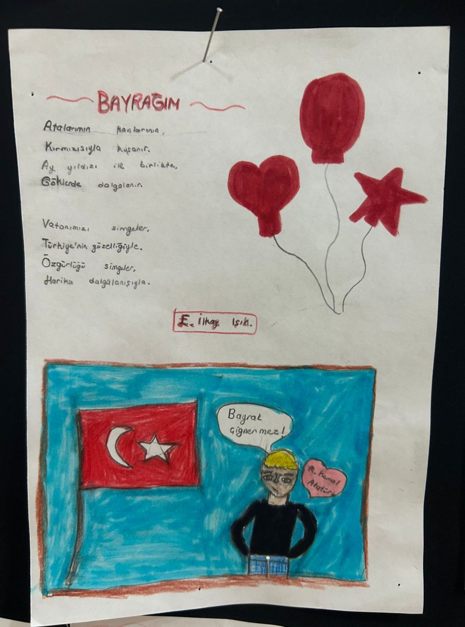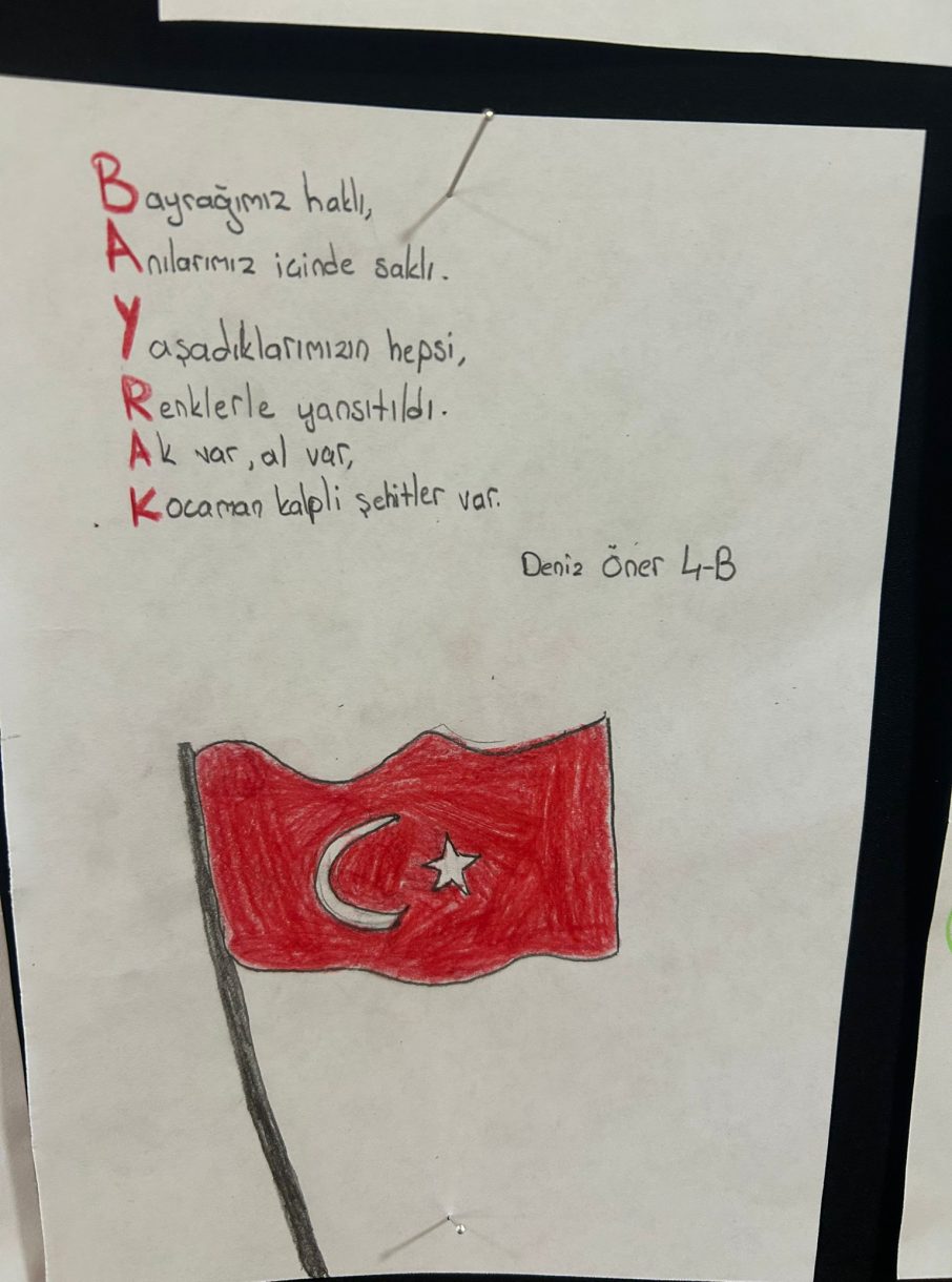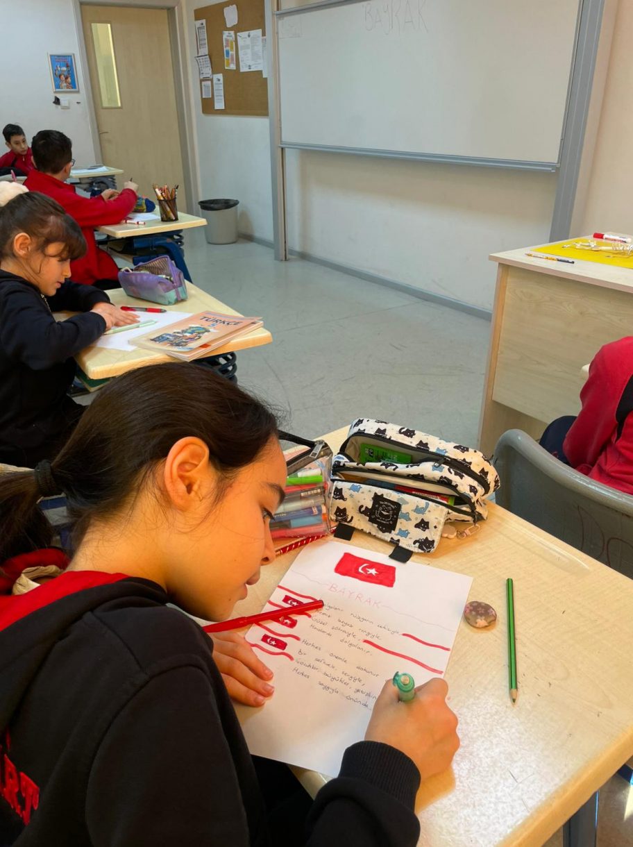 Derslerde bayrak bilincini artırmaya yönelik şiir yazma etkinlikleri gerçekleştirildi. Öğrenciler duygu ve düşüncelerini dizelere dökerek milli değerlere olan bağlılıklarını ifade etme fırsatı buldu. Ayrıca okul, Türk bayraklarıyla donatılarak görsel bir farkındalık oluşturuldu.