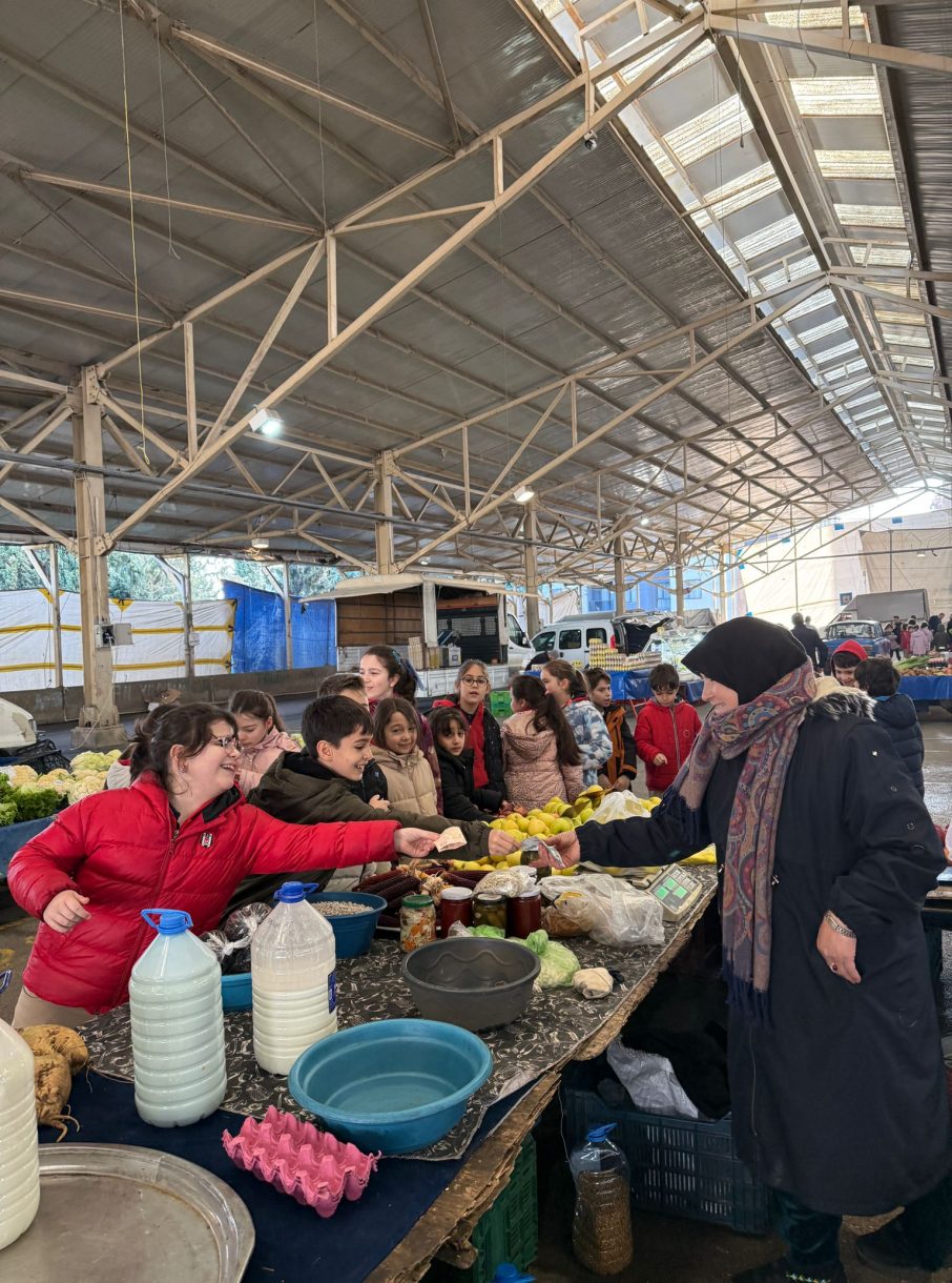 Pazar gezisi sırasında öğrenciler; mevsimine göre hangi meyve ve sebzelerin tüketildiğini, doğal ve taze ürünlerin nasıl ayırt edilebileceğini, yerel üretimin ve sağlıklı beslenmenin önemini uygulamalı olarak öğrendi.