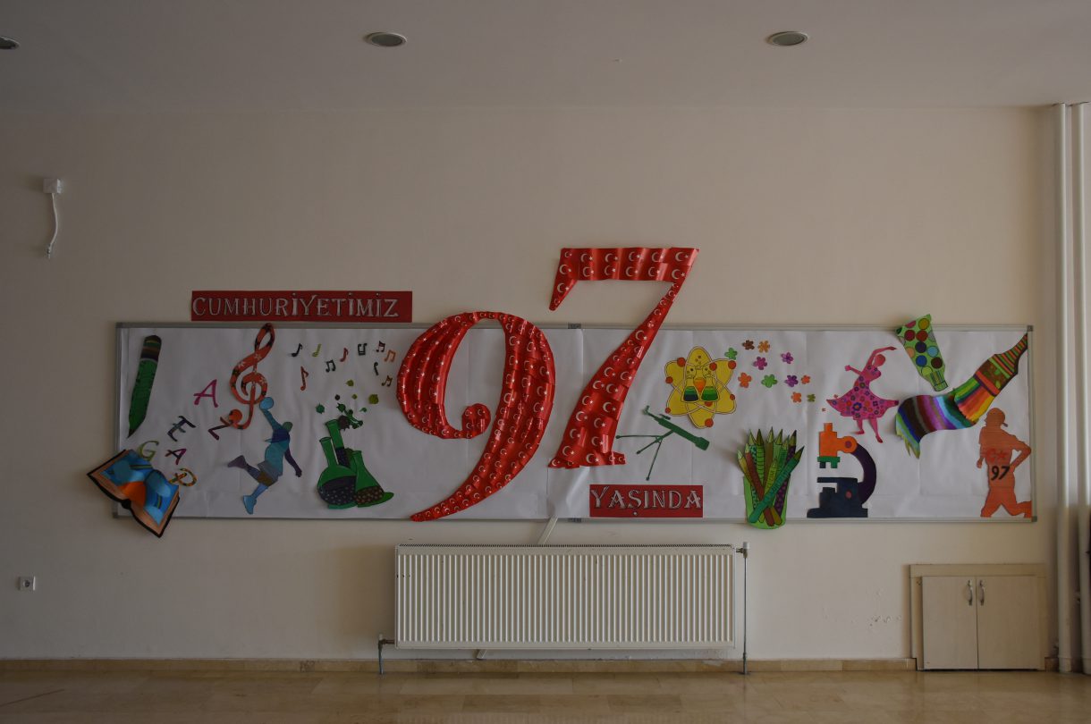 Okulumuz 8. Sınıf öğrencilerimizin Görsel Sanatlar ve Teknoloji ve tasarım dersinde yaptığı çalışmalardan oluşan "CUMHURİYETİMİZ 97 YAŞINDA" konulu sergimiz okulumuz giriş katında sergilenmektedir.
