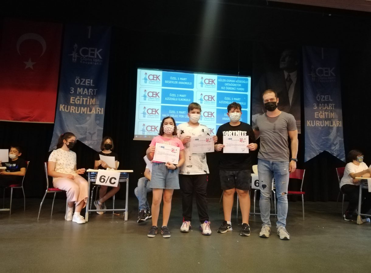 Öğrencilerimiz, heyecanla oturdukları yerden yarışmaya katılırken büyük bir ilgiyle takip ettiler. Oldukça çekişmeli geçen yarışmamızda sınıflar arası puan farkının çok az olması yarışmayı heyecanlı hale getirirken öğrencilerimizin Sosyal Bilgiler alanıyla ilgili soruların tamamına yakınını doğru yanıtlamaları hepimizi oldukça mutlu etti.