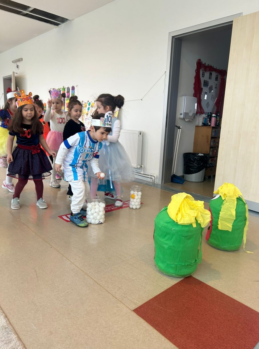 Etkinlik kapsamında öğrenciler, 100 sayısını pekiştirmeye yönelik çeşitli oyunlara katıldı. Rakamlarla uygun lego yerleştirme etkinliğiyle sayı eşleştirme çalışmaları yapılırken, pipetlerle 100 yıldız taşıma oyunu sayesinde dikkat ve el-göz koordinasyonu desteklendi. "Canavara 100 top yedirme" ve mandallarla 100 çorap asma etkinlikleri ise hem eğlenceli anlara sahne oldu hem de ince motor becerilerinin gelişimine katkı sağladı.