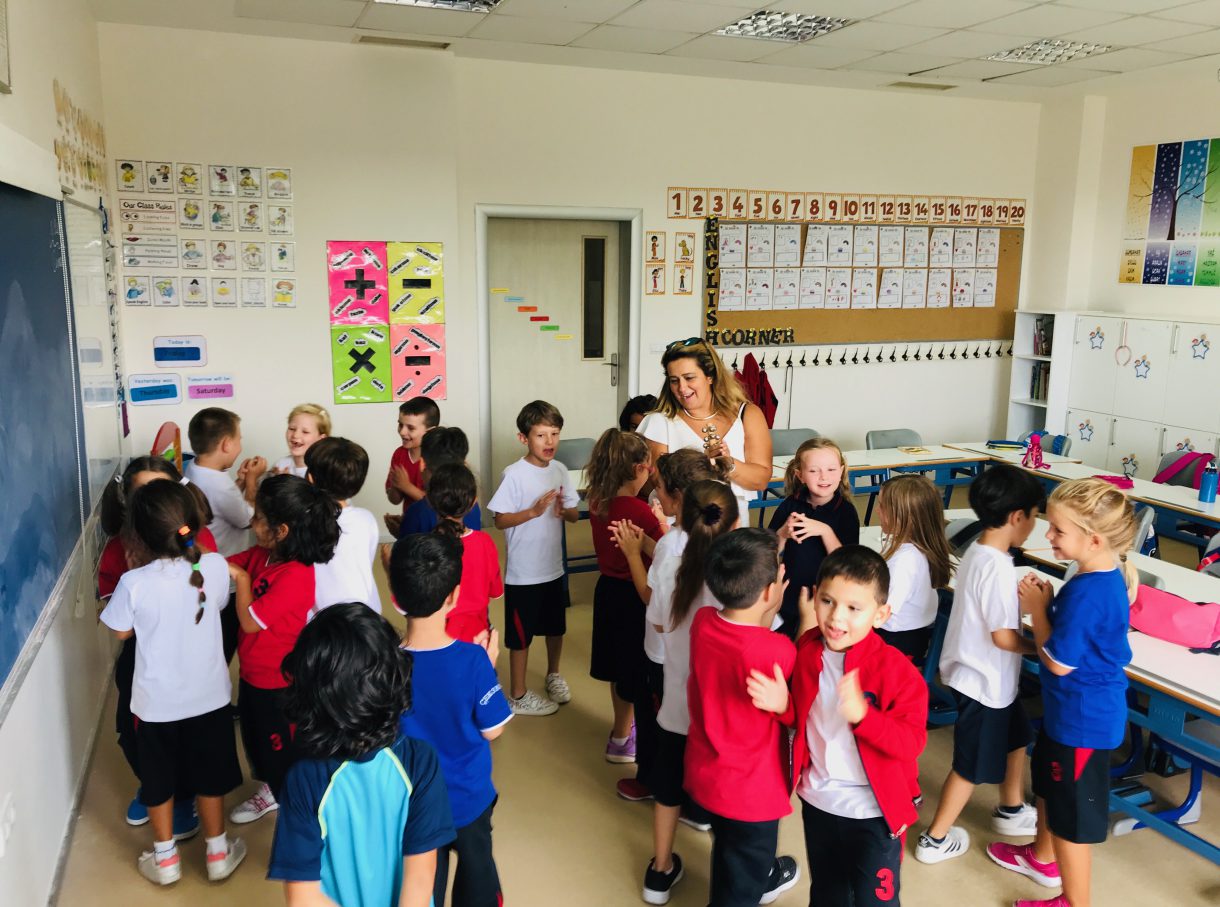 Okulumuz Rehber Öğretmeni Yeşim Çoruh Güler uyum haftası etkinlikleri kapsamında ana sınıfı ve 1.sınıf öğrencileriyle "Okulumuzun Zilini Mutluluğa Çalalım" etkinliğiyle güzel bir eğitim-öğretim yılına merhaba dediler.
