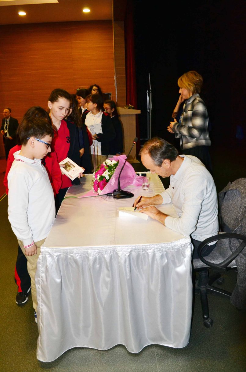 Çocuk edebiyatı ağırlıklı olmak üzere 40 esere imza atan Süleyman BULUT ile en bilinen ve sevilen eseri ''Büyük Atatürk'ten Küçük Öyküler'' üzerine bir söyleşi gerçekleştirdik. 5, 6, 7 ve 8. sınıf öğrencilerimiz Süleyman BULUT'UN Atatürk'le ilgili aktardığı bilgileri, dikkatle ve ilgiyle dinlediler.
