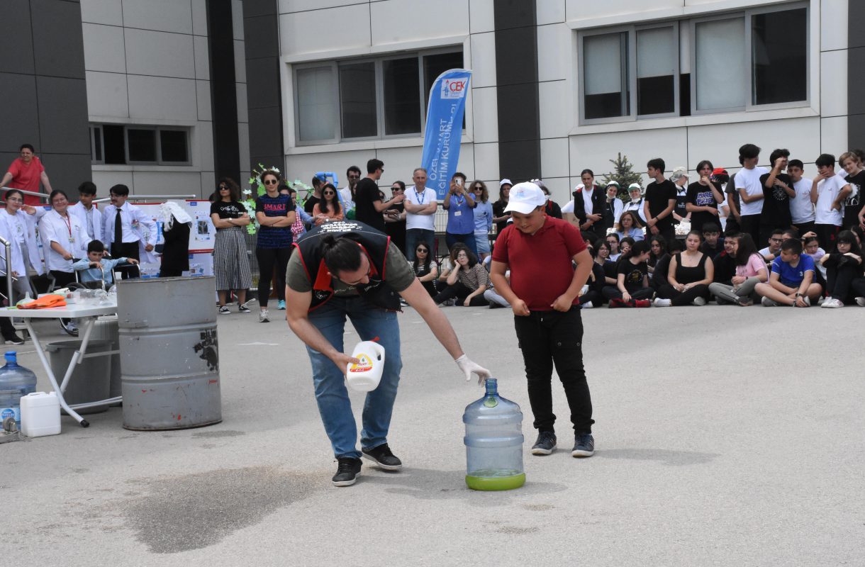 3 Mart Ortaokulu Orkestra Kulübü'nün mini konseri ile eğlenen öğrenciler, Bilim ve Teknoloji Merkezinden gelen deney-gösteri grubunun deneyleri ile heyecanlı anlar yaşadılar.