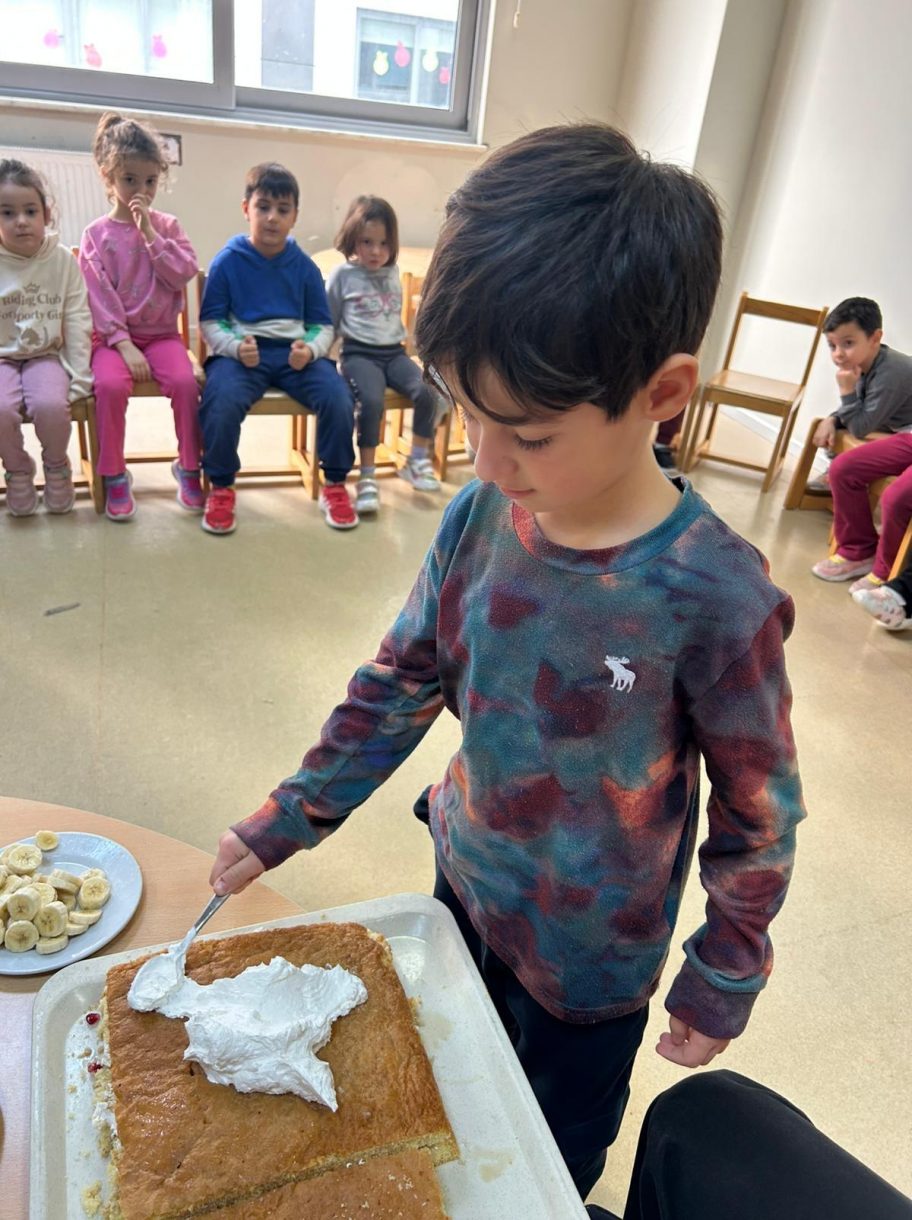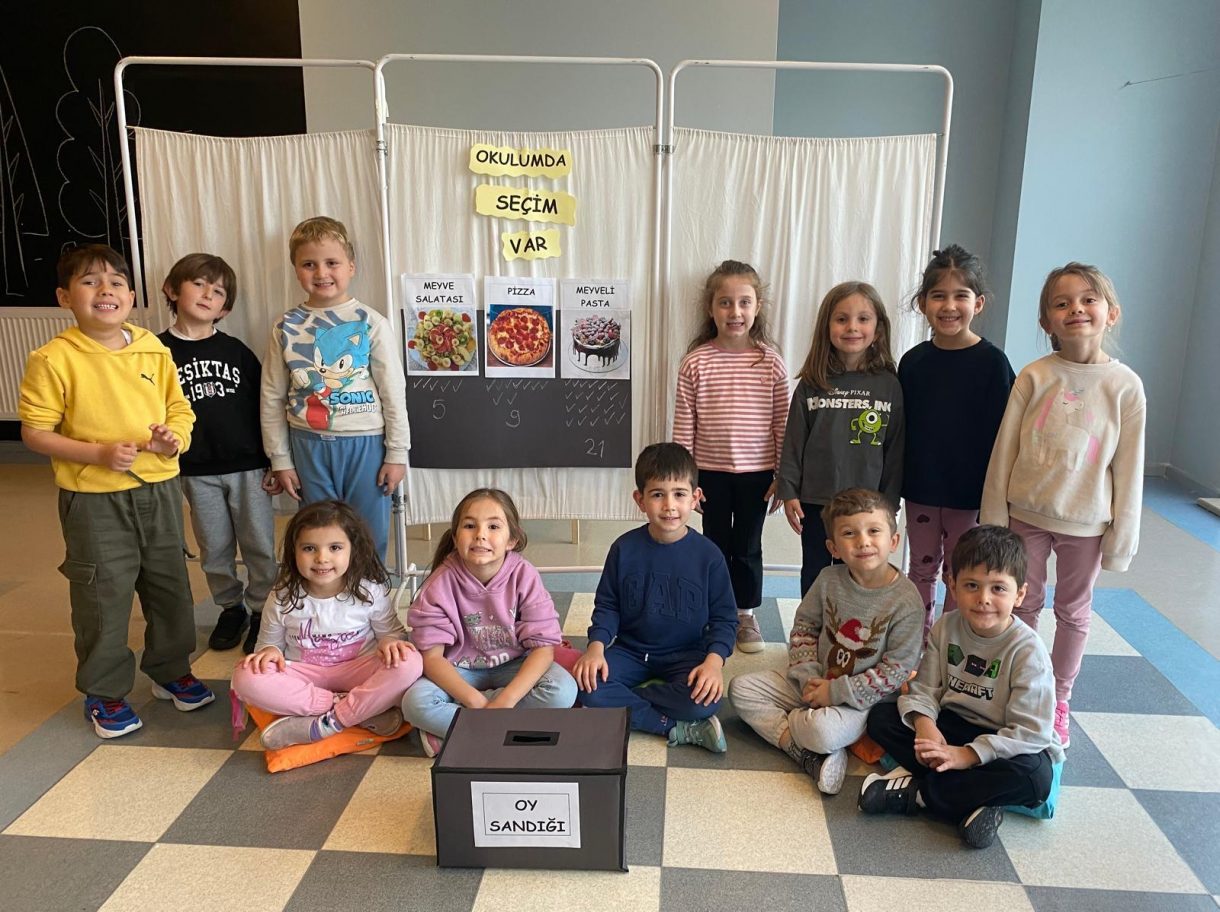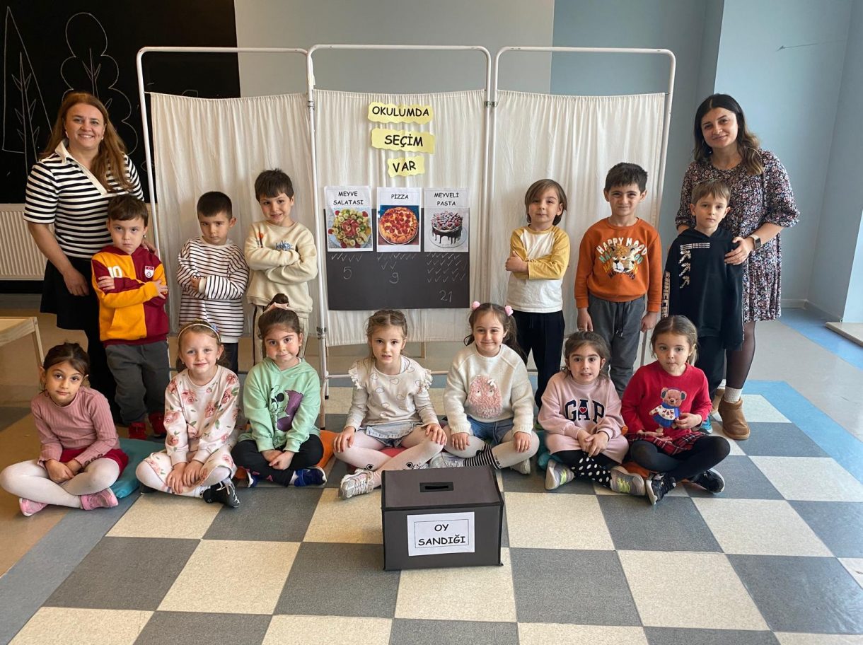 Öğrenciler, yapmak istedikleri mutfak etkinliklerini listeledi; meyveli pasta, pizza ve meyve salatası olmak üzere üç seçenek belirlendi. Tercihlerini oy pusulalarıyla sandığa atan öğrencilerin oyları sayıldı ve çoğunluğun seçimi meyveli pasta oldu. Seçim sonucunun ardından öğrenciler, meyveli pastayı birlikte hazırlayarak etkinliği tamamladı.