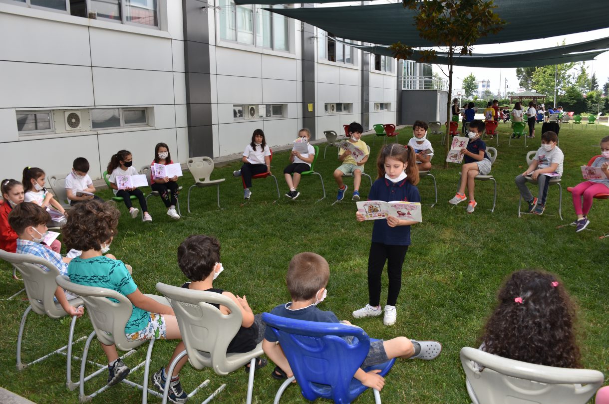 Kitap okuyan öğrenciler içinde, okulumuzun anasınıfından mezun olan öğrencilerimizin heyecanları ise bir başkaydı. Tüm yıl boyunca hazırlık sınıflarına gelerek sınıftaki arkadaşlarına kitap okuyacakları günü ayrı bir heyecanla bekleyen öğrencilerimiz, Covid-19 salgın koşullarına rağmen bunu gerçekleştirmenin mutluluğunu yaşadılar.
