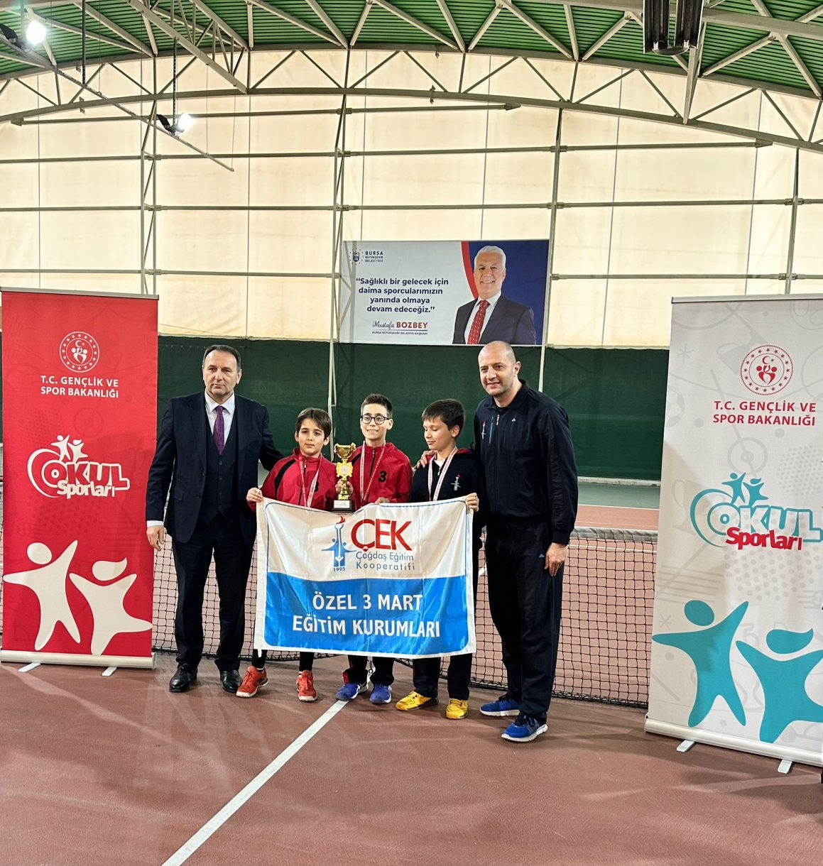 3 Mart Azizoğlu Ortaokulu, 12-16 Ocak tarihleri arasında Mihraplı Tenis Kortlarında düzenlenen Okul Sporları Kort Tenisi Yıldızlar İl Birinciliği müsabakalarında elde ettiği derecelerle dikkat çekti. 14 okulun katılım sağladığı turnuvada öğrenciler üstün bir mücadele sergiledi.