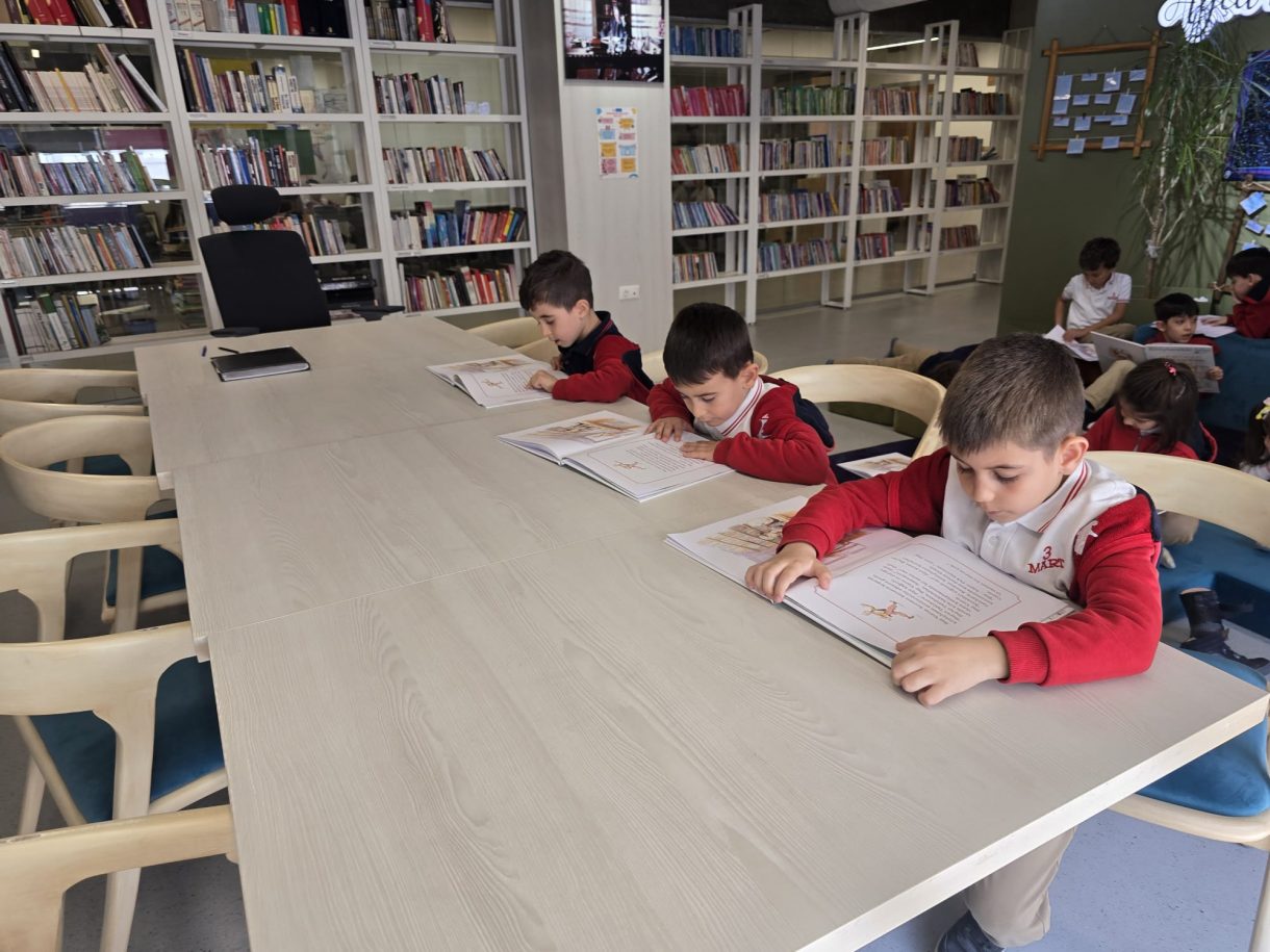 Kütüphaneler Haftası kapsamında 1. sınıf öğrencileriyle kütüphanede ilk kitap okuma etkinliği gerçekleştirildi.