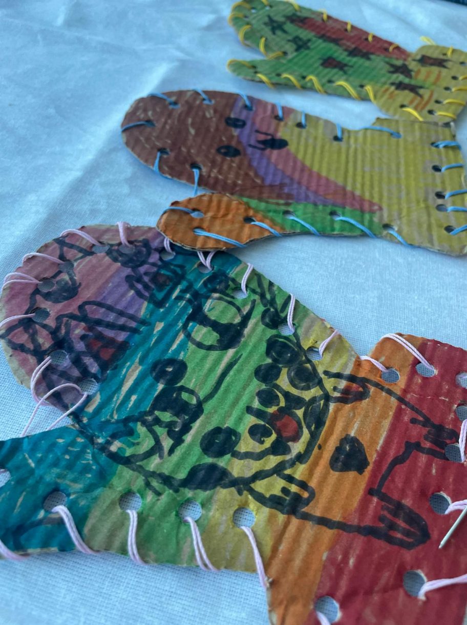 Çalışmanın sonunda ortaya çıkan rengârenk eldivenler, çocukların üretmenin mutluluğunu yaşadığı bu sürecin en güzel yansıması oldu.