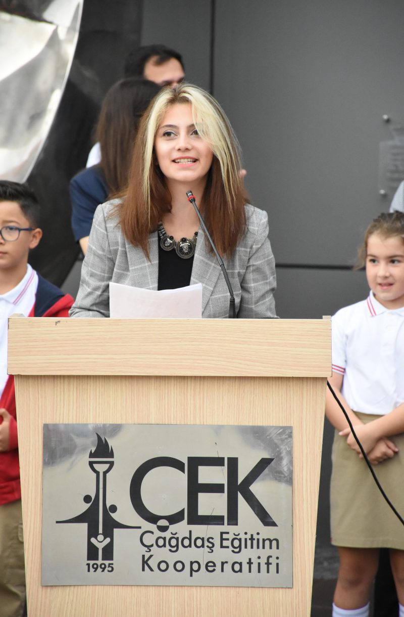 4. sınıf öğrencilerimizden Ada Çokşen ve Ayşe Deniz Salan'ın andımızı okumasının ardından, 4. Sınıf öğrencilerimizin "3 Martlı Olmak" konuşmaları ile devam etti.