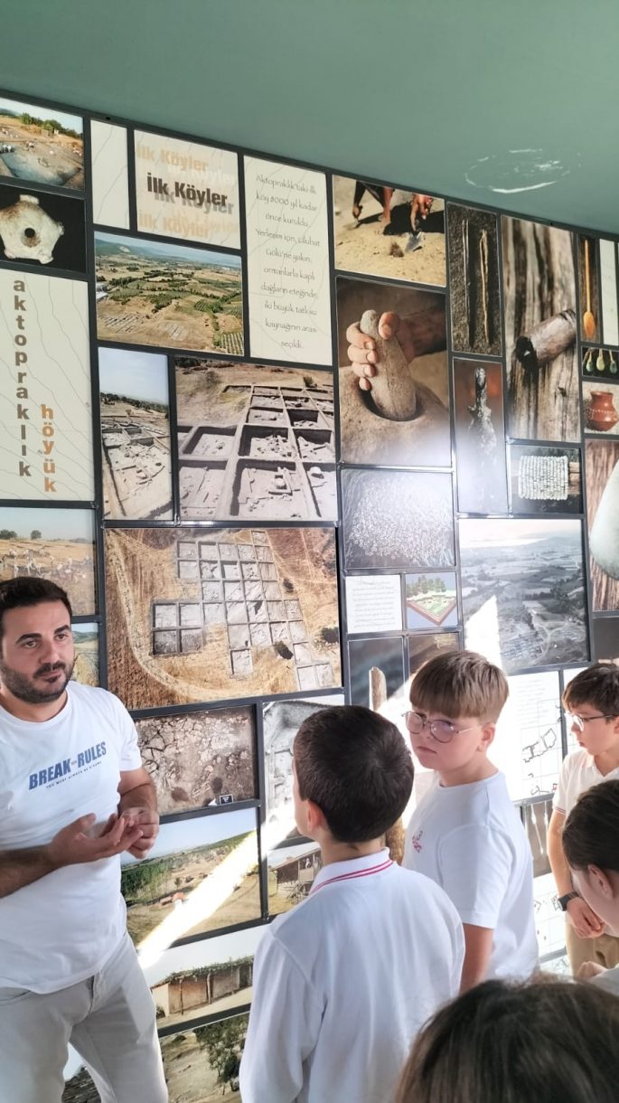 Öğrenciler, Bursa'nın 8.500 yıllık tarihine ışık tutan Aktopraklık Höyük'te incelemelerde bulunarak kentin en eski yerleşim alanlarından birini yakından tanıma fırsatı buldu. Gezi boyunca, höyükten çıkarılan arkeolojik eserleri, kazı alanlarını ve dönemin yerleşim modellerini gözlemleyen öğrenciler, tarih öncesi yaşam biçimleri hakkında bilgi edindi.