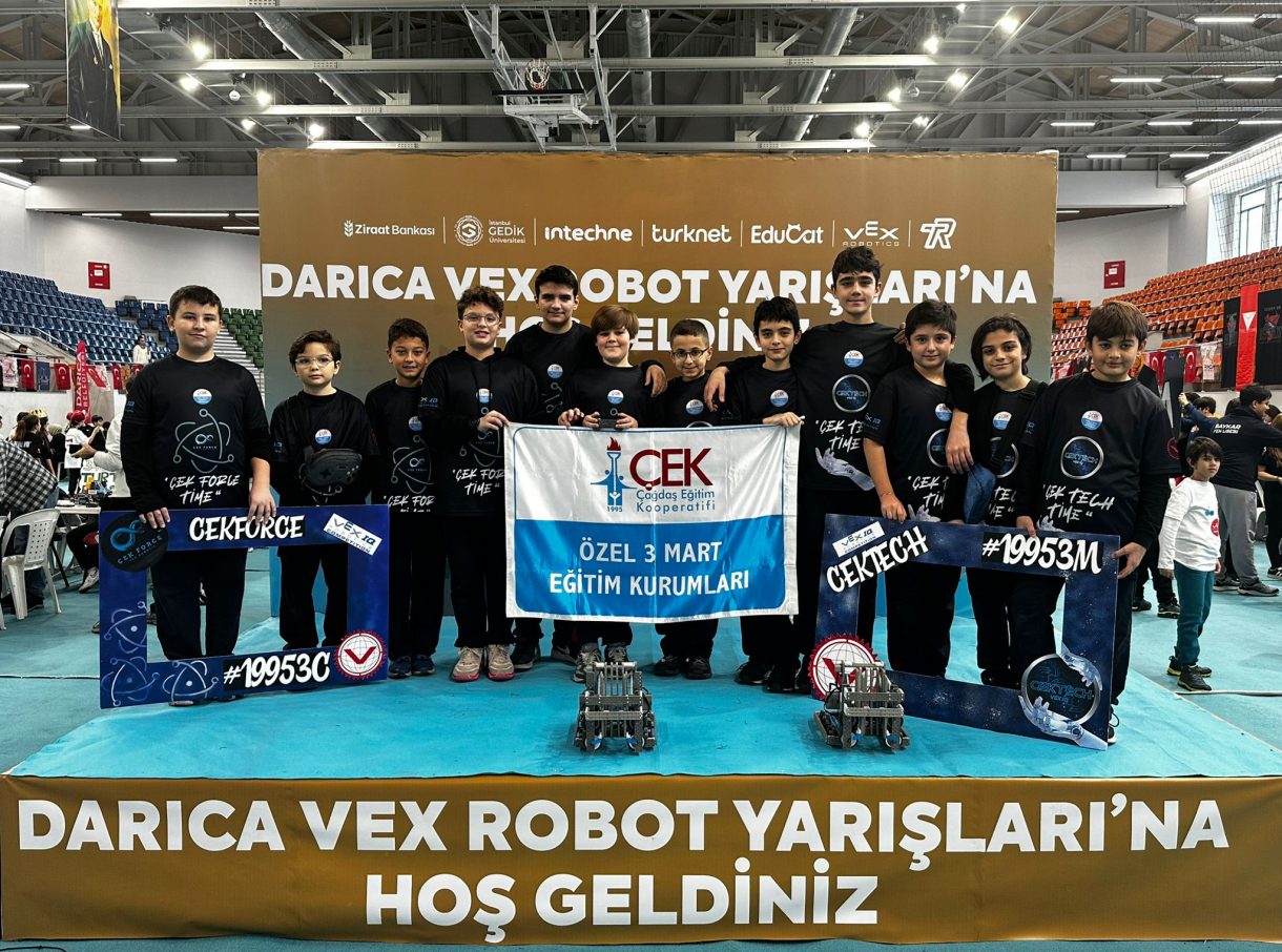 3 Mart Azizoğlu Ortaokulu, Kocaeli Darıca Spor Kompleksi'nde düzenlenen VEX IQ Competition Darıca yarışmasına robotik takımlarıyla katıldı. Okulu temsilen yarışan CEKFORCE ve CEKTECH takımları, VEX IQ'nun bu yılki teması "Mix and Match" kapsamında dönem boyunca kulüp derslerinde edindikleri bilgi ve becerilerle kendi robotlarını tasarlayıp kodladı.