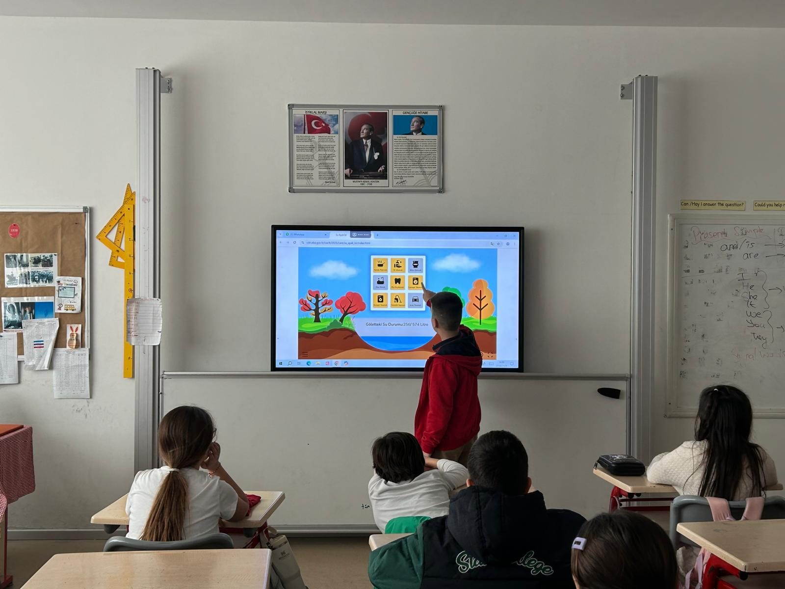Su kaynakları ve bu kaynakların doğru, verimli kullanımı konusunda video izleyen öğrencilerimiz bu konuda öğrendikleri bilgileri daha sonra interaktif videolu çalışmayla pekiştirerek bilinçli bir birey olma yolunda önemli bir adım attılar.
