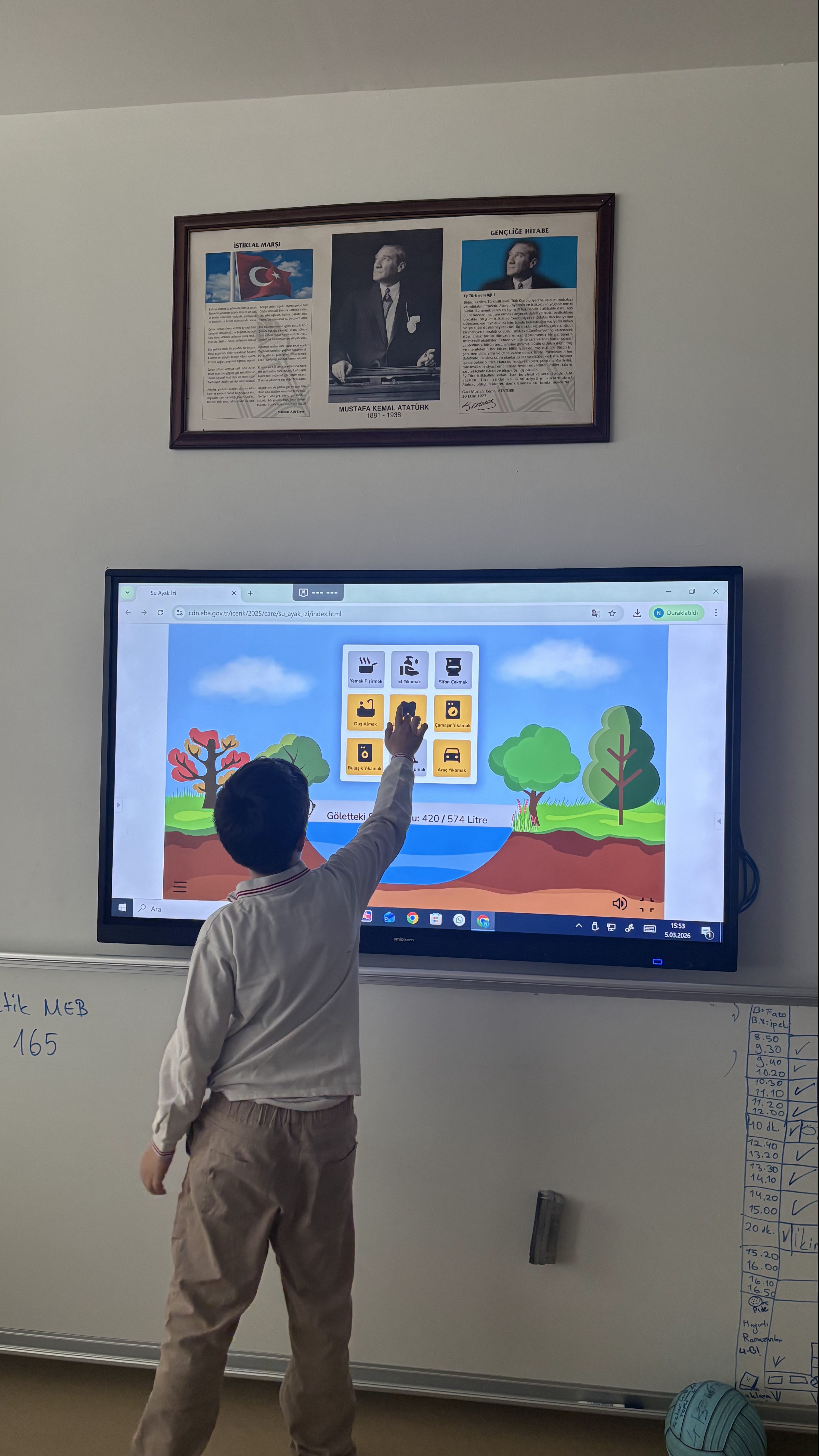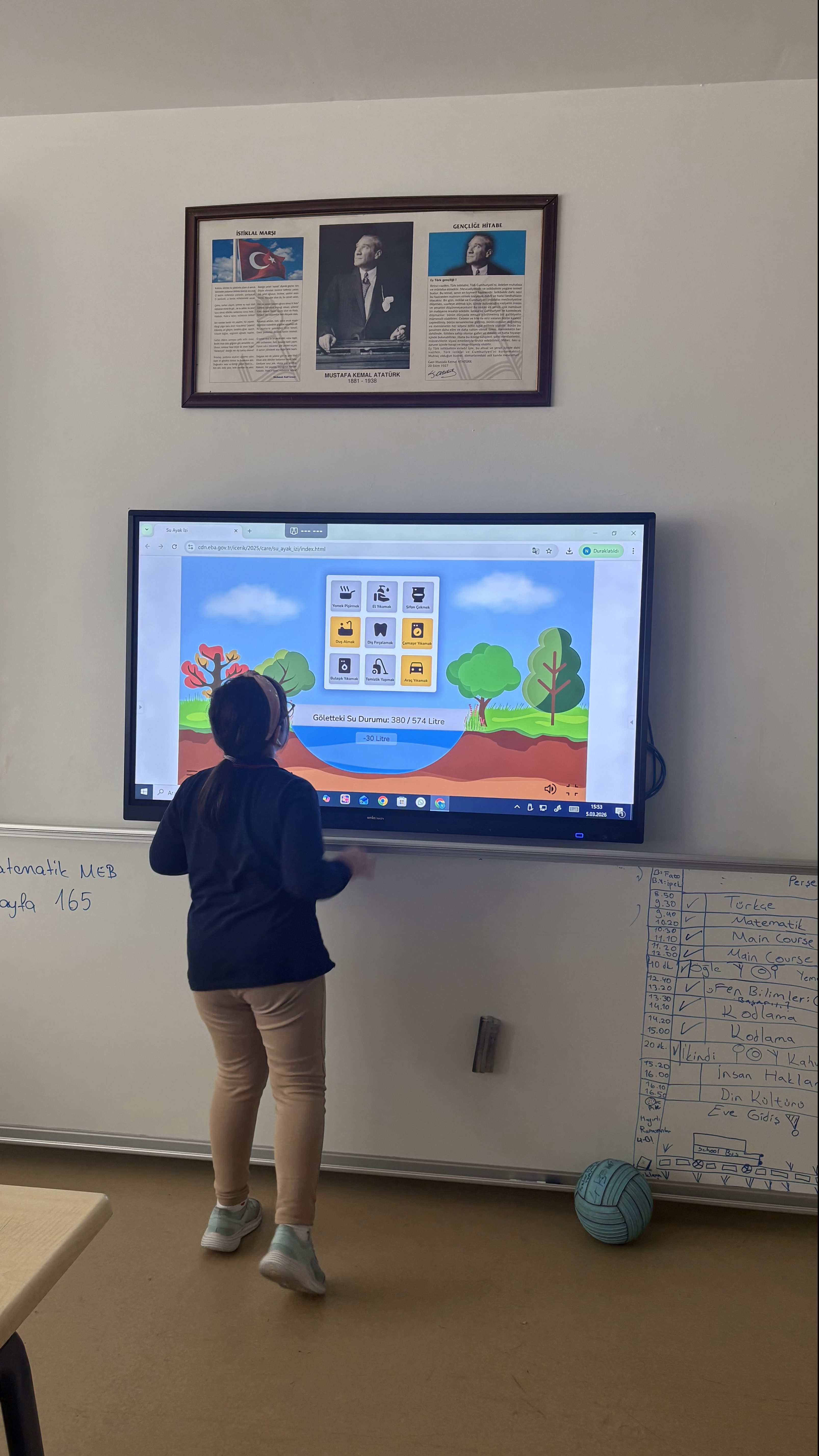 Okulumuzda yürütülen Yeşil Vatan Projesi kapsamında, 4. sınıf öğrencileriyle farkındalık yaratan bir etkinlik gerçekleştirildi. "Su Verimliliği" temasıyla işlenen derste öğrenciler, hem suyun önemini hem de su ayak izini hesaplayarak eğitici bir çalışmaya imza attı.