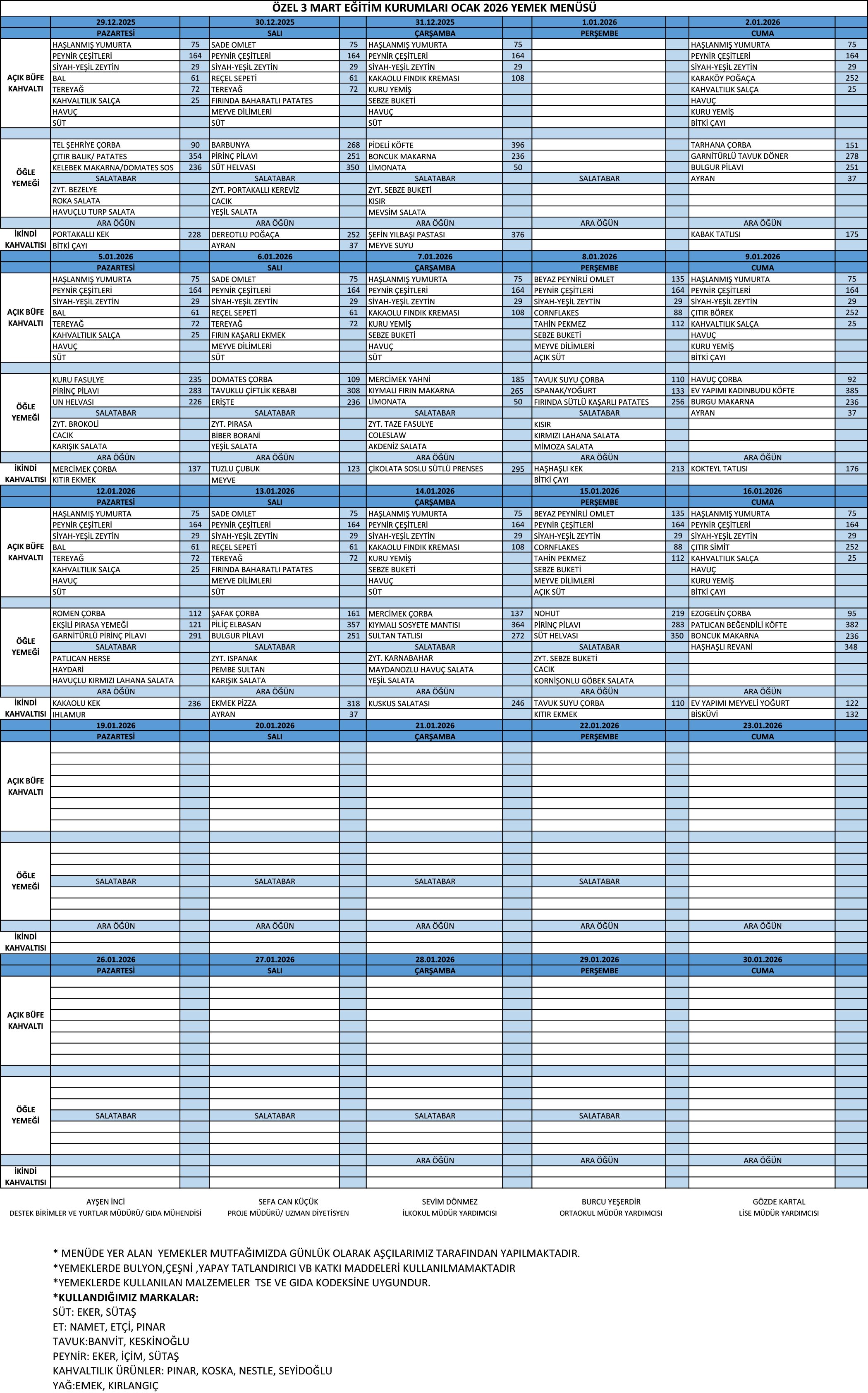 AYLIK YEMEK LİSTESİ